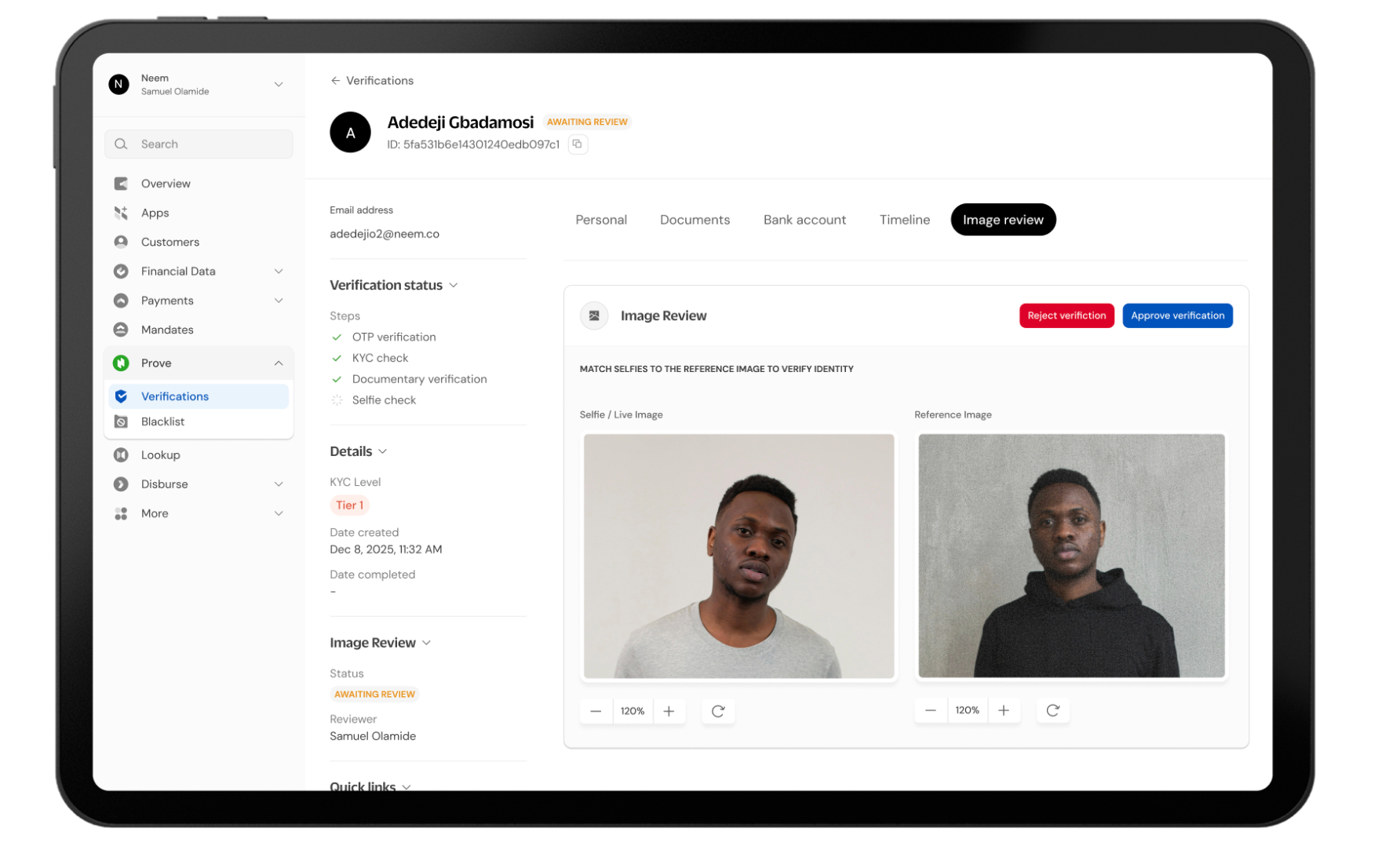We’re excited to share that we’ve added the Prove Face-ID Manual Review feature. This lets you now manually validate users who encounter issues with the Prove Face-ID verification step (e.g., due to poor lighting or low-quality images). After three failures, the system automatically escalates the session for your review via the Mono dashboard.